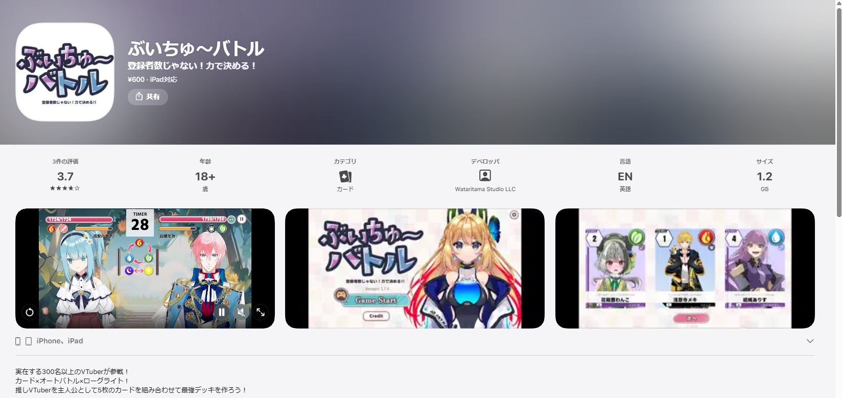 ぶいちゅ~バトル 登録者数じゃない!力で決めるiOS版はこちら